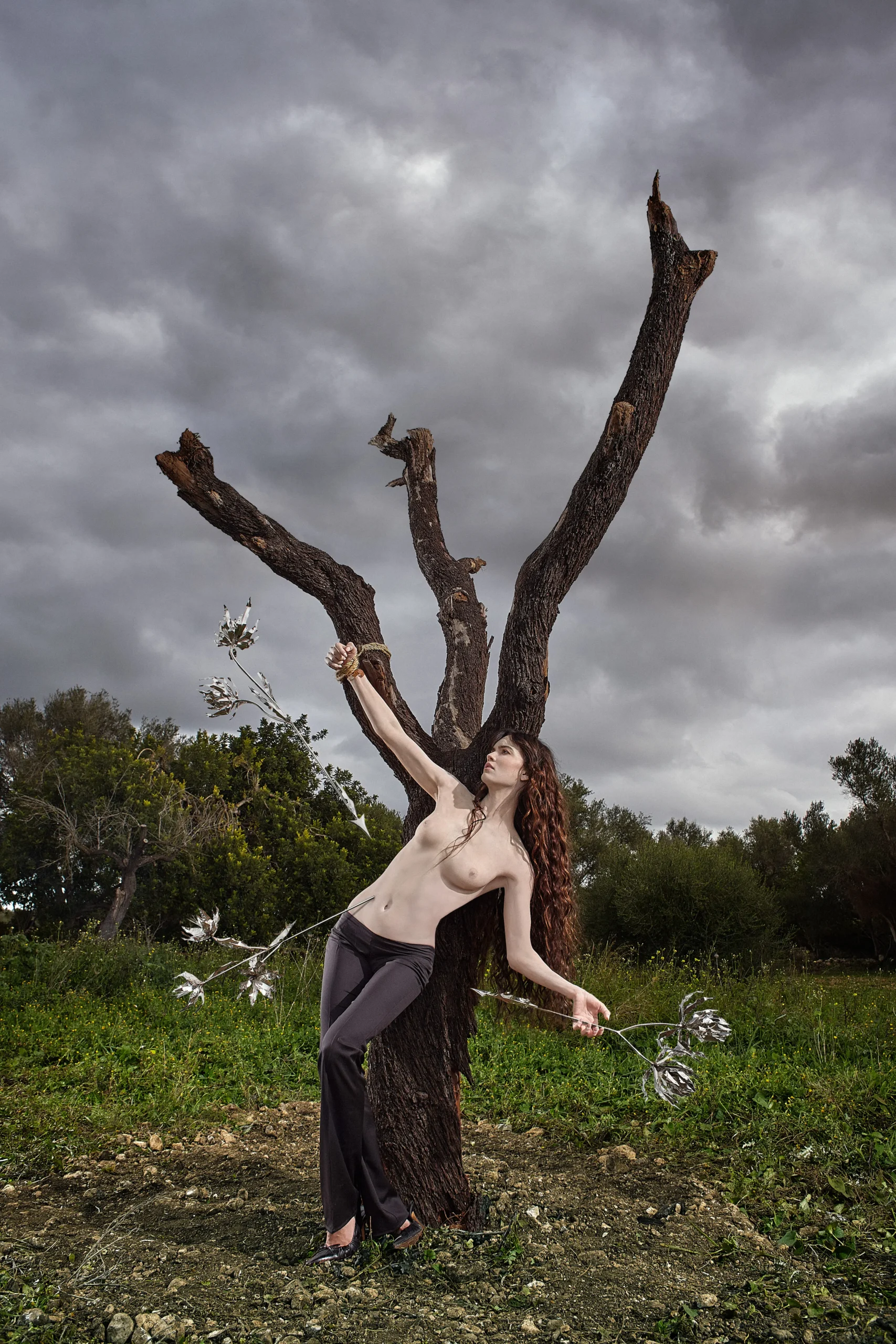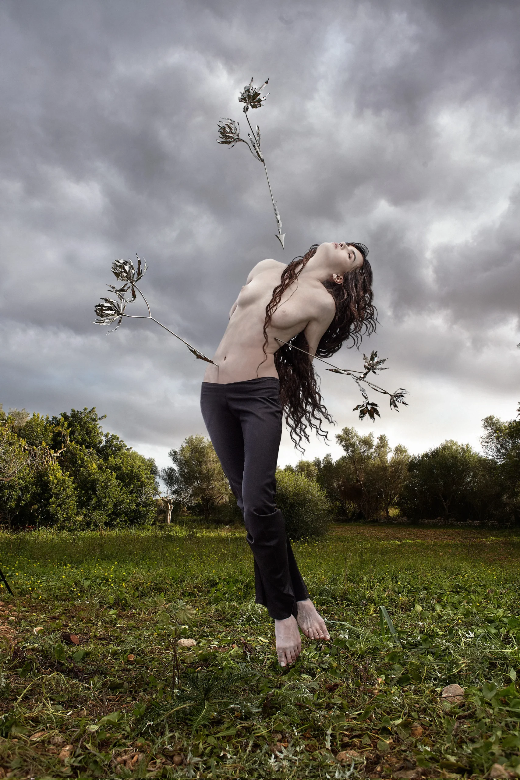 The photographic campaign, directed by Biel Capllonch, perfectly captures the essence of the collection, blending a bold, surrealist style with the representation of Saint Sebastian through a female figure. This transformation strengthens the idea of defiance and reflects the evolution of Saint Sebastian’s figure as an emblem of struggle and autonomy in the 21st century.